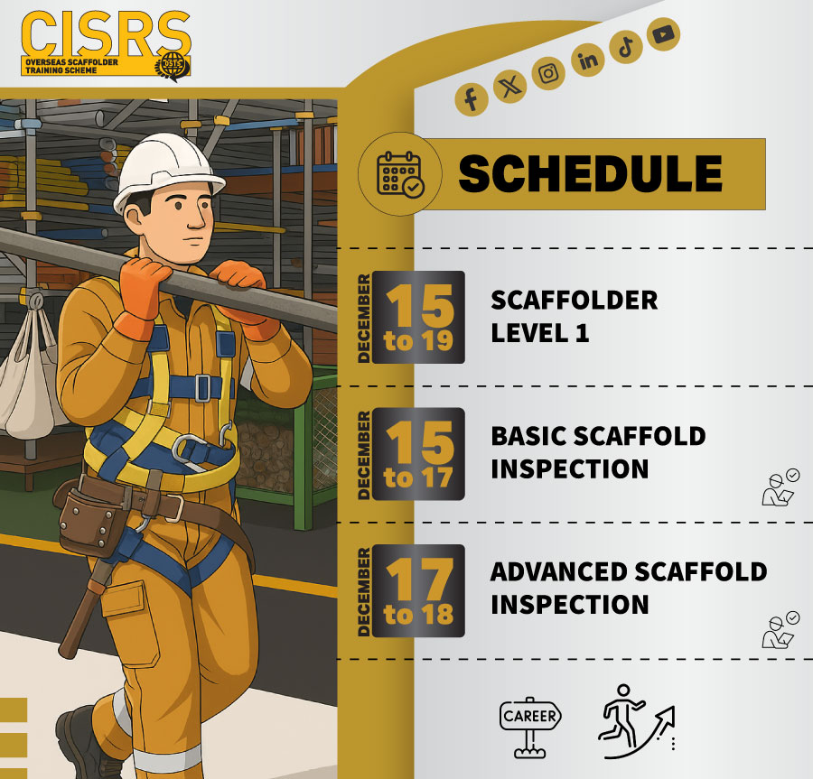 Successful delegates will receive a CISRS Overseas Scaffolder Level 2 Certificate of Training and Record Card.