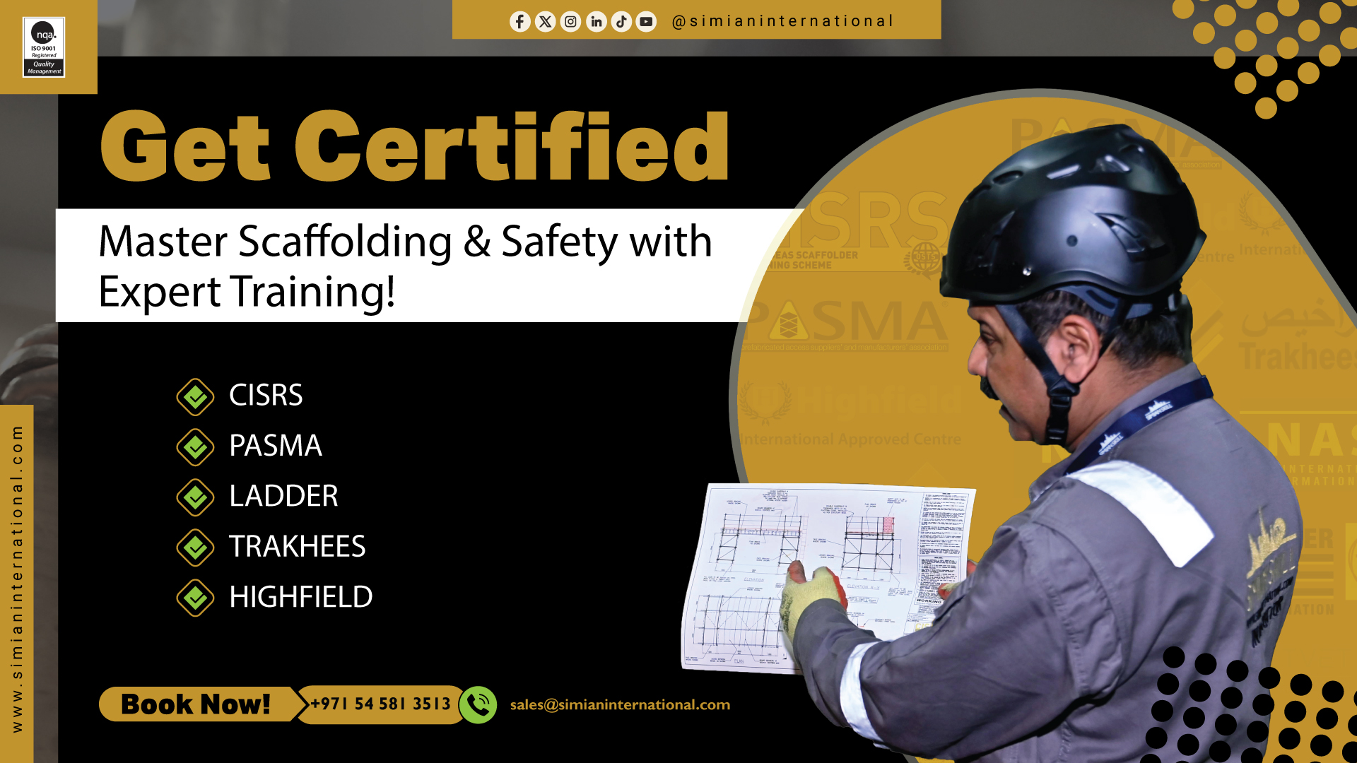 TRAKHEES Certification For projects in the UAE, TRAKHEES certification is essential for compliance with local regulations. Our TRAKHEES training programs are designed to meet the specific requirements of the UAE’s scaffolding and construction safety standards.